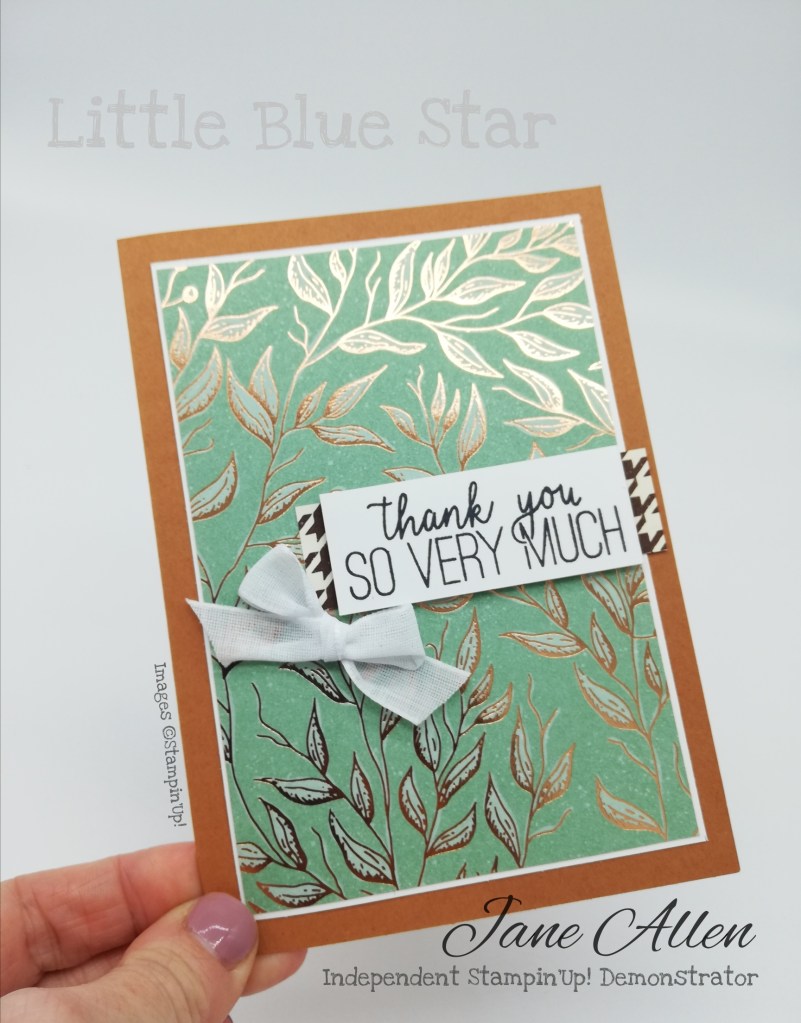 Hello! I can’t believe it’s November already?! I just wanted to share an extremely easy card I made, using some of the beautiful DSP from Stampin’Up! called Gilded Autumn. When you have DSP as stunning as this, you can make such a beautiful card so easily!