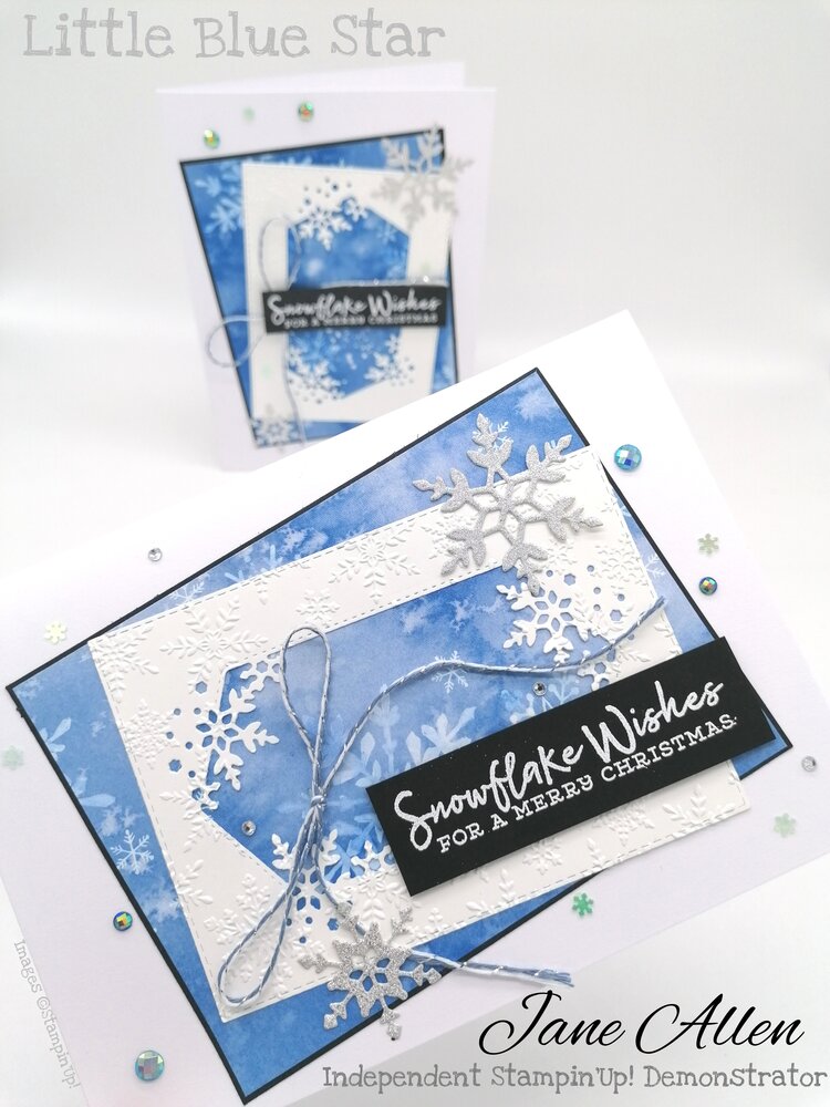 The first card is a snowflake Wishes card, using the snowflake dies, and the DSP from the suite. I do love this suite!