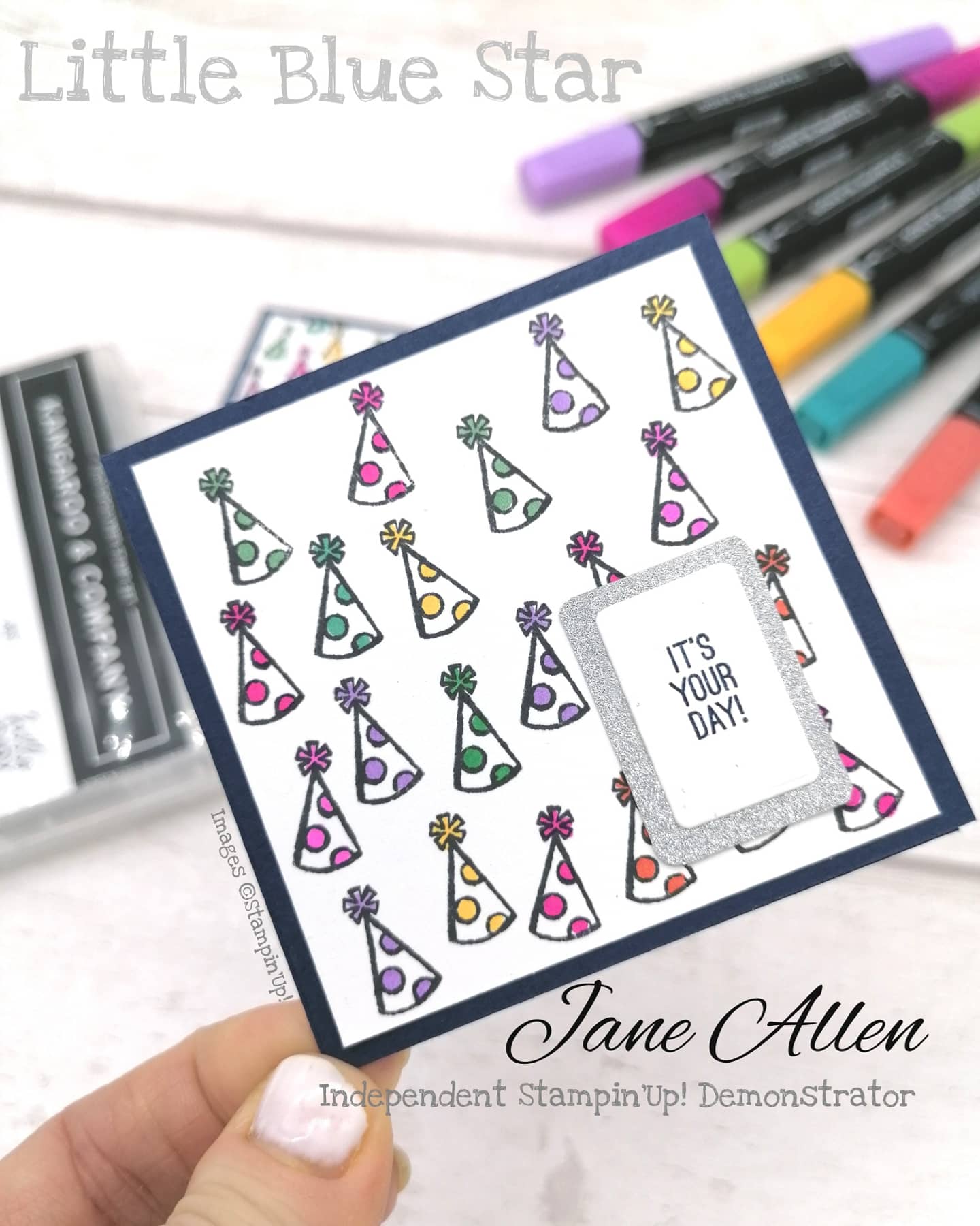 Hey everyone, today’s cards I made using ‘Kangaroo and company’ stamp set, but didn’t even use a kangaroo! Instead I just used the little hat and repeat stamped!