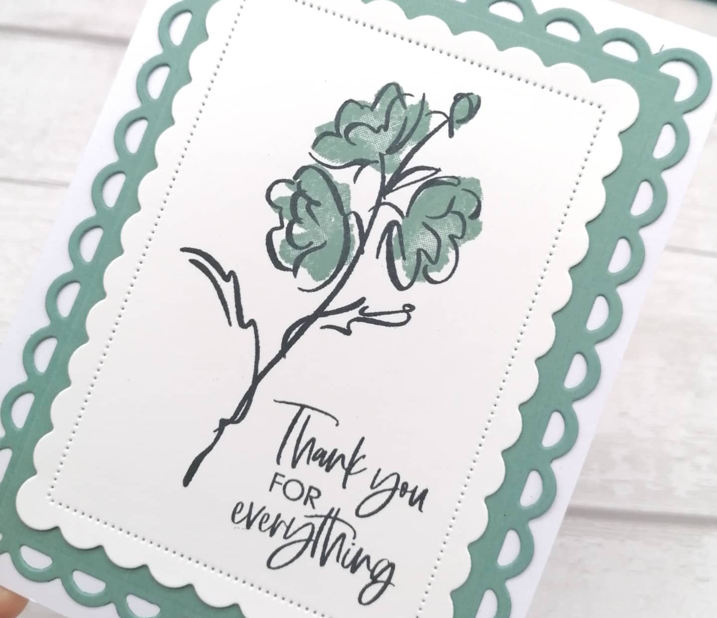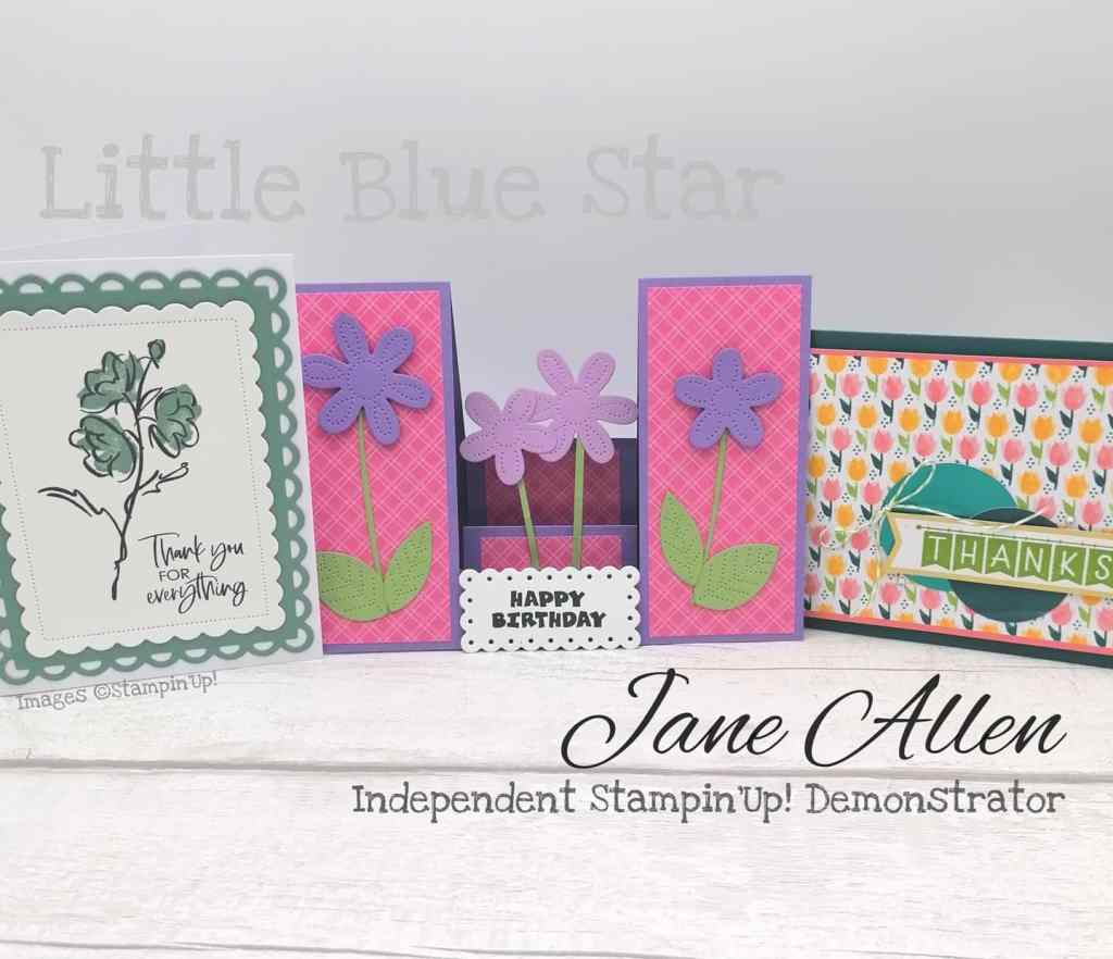 So the first one is so easy! The little bundle from ‘Color and contour’ incudes some really lovely dies. I used one of the new in colours, Soft succulent, and dies cut the outer layer. Then the next layer is basic white, and class attendees could stamp with what they had at home, choosing their own. I used the coordinating stamp set, which I adore!! You could whip up a fair few of these pretty easily I think!