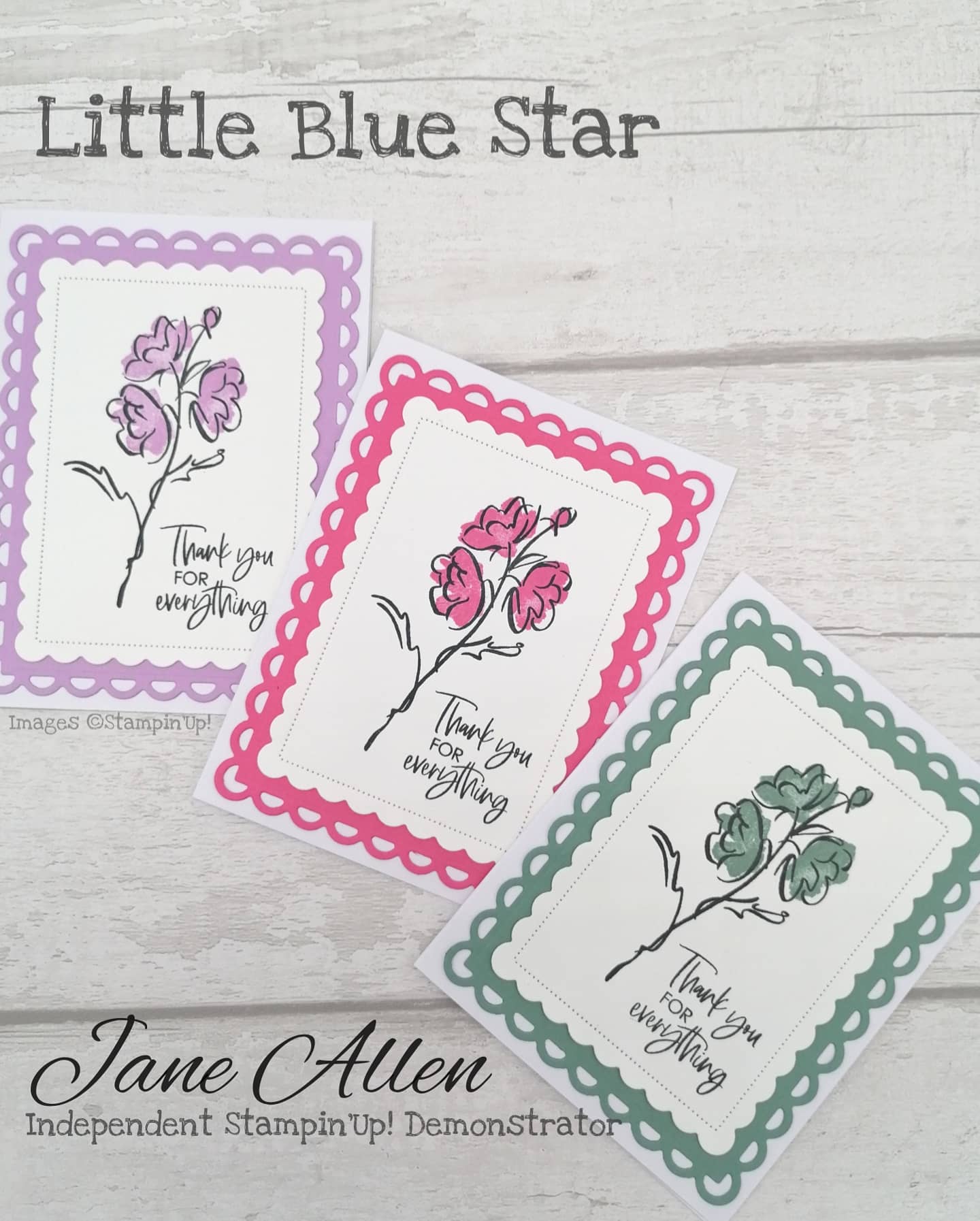 Hey everyone, so I thought I’d share a few more cards I’ve made in different colours. This is the same card as I made in the May class, but as it was so easy, I whipped up a few different colour versions. I even did a Seaside Spray version, I know, I know. It’s retired…but it’s SO lovely 💙😂