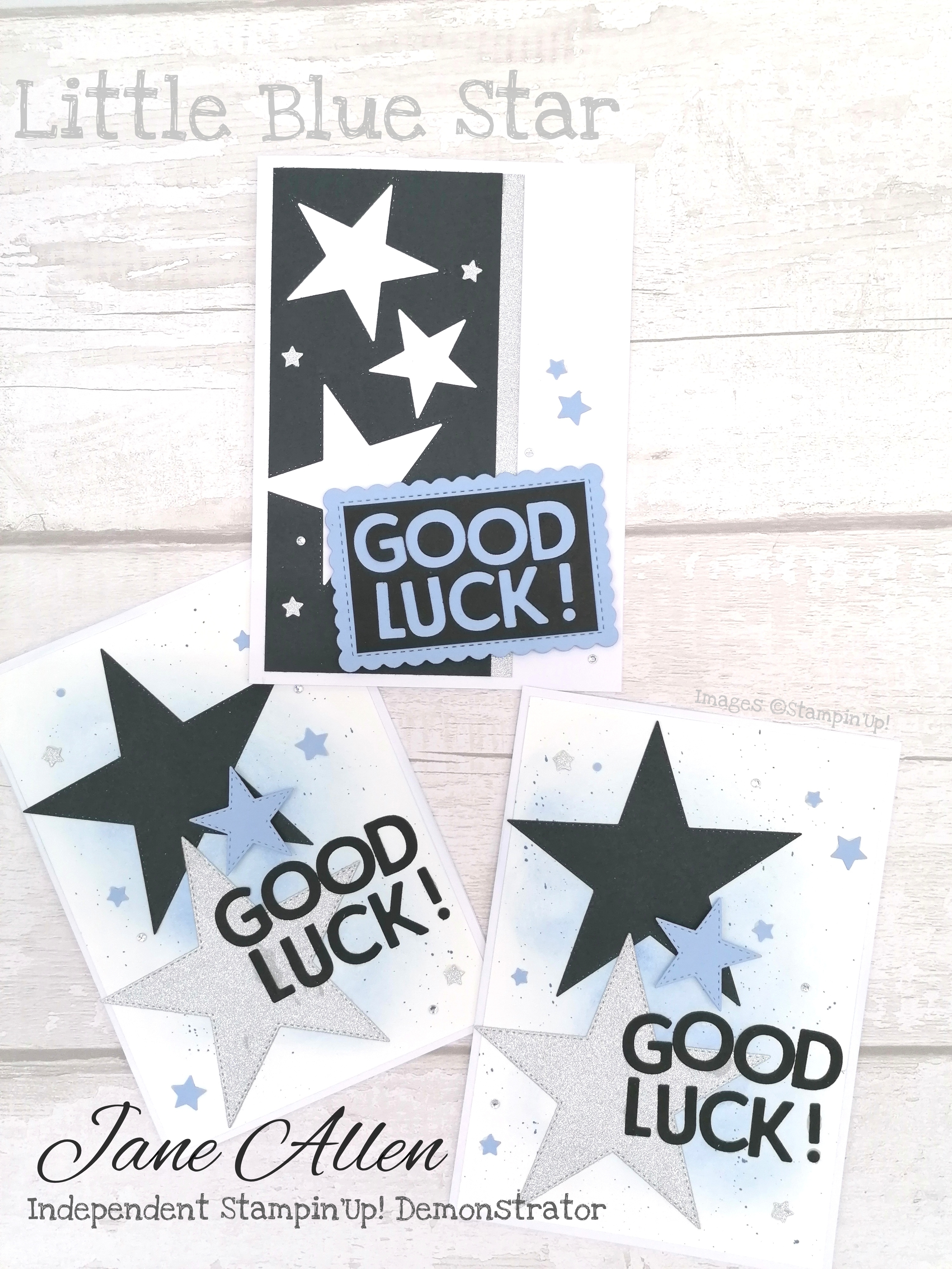 For the two bottom cards(same) I used my blending brush to create a subtle background in Seaside Spray. Then added a large black Star, silver star and a small Seaside Spray star. I adhered the letters with tombow glue, built you could use the adhesive foam and die cut, which create a lovely raised letter. I added some tiny stars, and a little splattering of ink to add texture and interest. I love it!