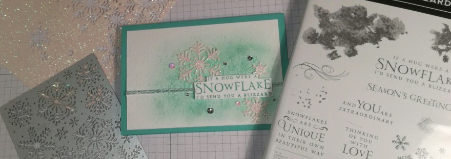 Hey everyone, so as you can tell, I am such a fan of this set! I just can't stop using it lol! I love everything about this card - the colours are my favourite, the hint of sparkle, and the delicate snowflakes- it just works! I started with a base card of Soft Sea Foam,… Continue reading Beautiful Blizzard is so beautiful!!